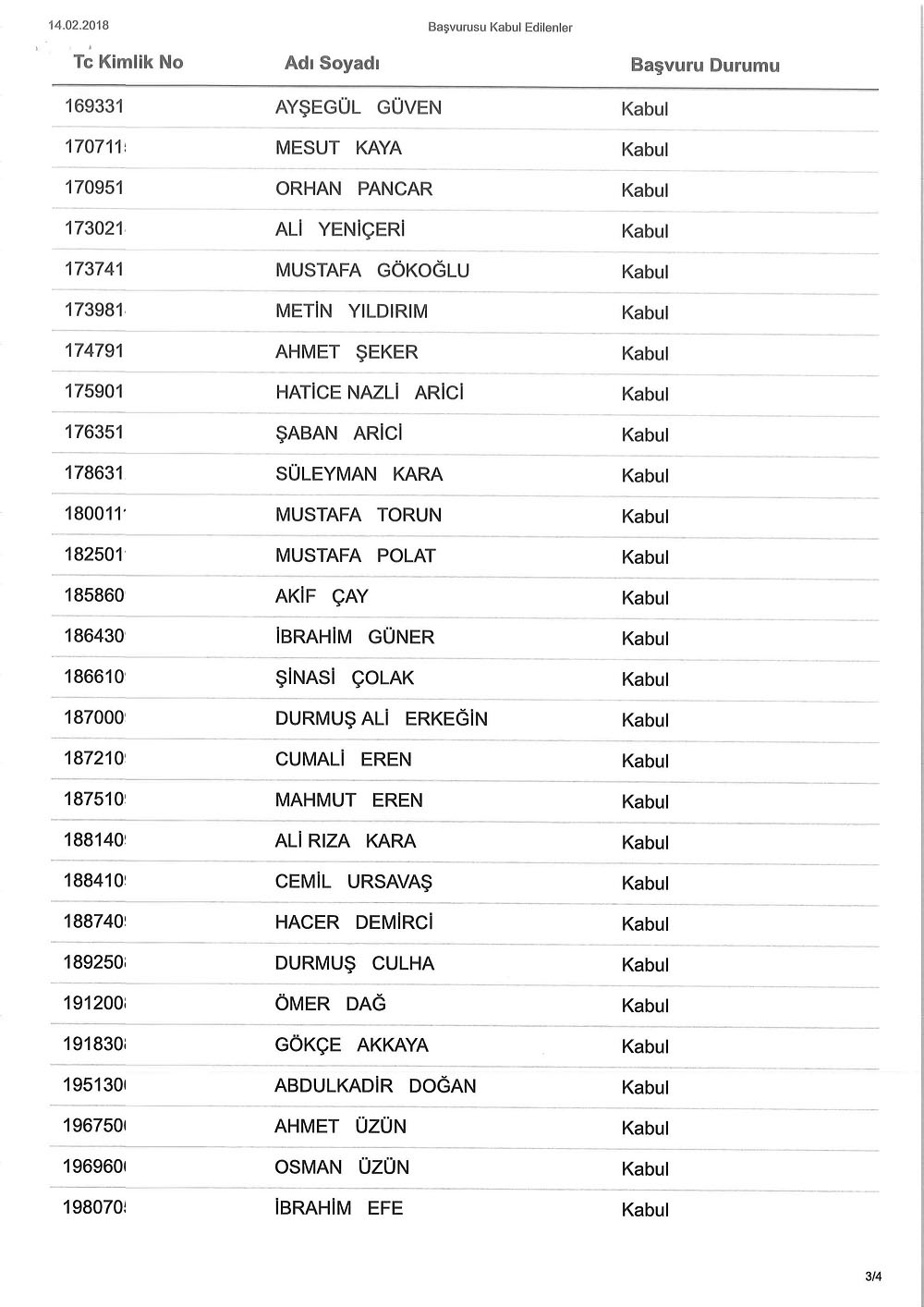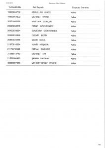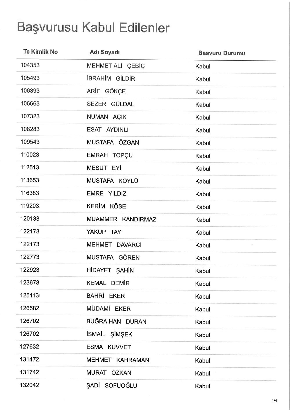 Tespit Komisyonu tarafından işlemi tamamlanan ve başvurusu kabul edilen işçi listesi aşağıda mevcuttur.