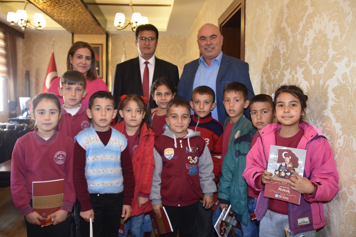 Ziyaretten duyduğu memnuniyeti dile getiren Başkanımız Saadettin Aslan, öğrencilere, Ülkü Ocakları Eğitim ve Kültür Vakfı tarafından çocuklara yönelik hazırlanan ‘Çocuklar için Nutuk’ kitabını hediye etti.